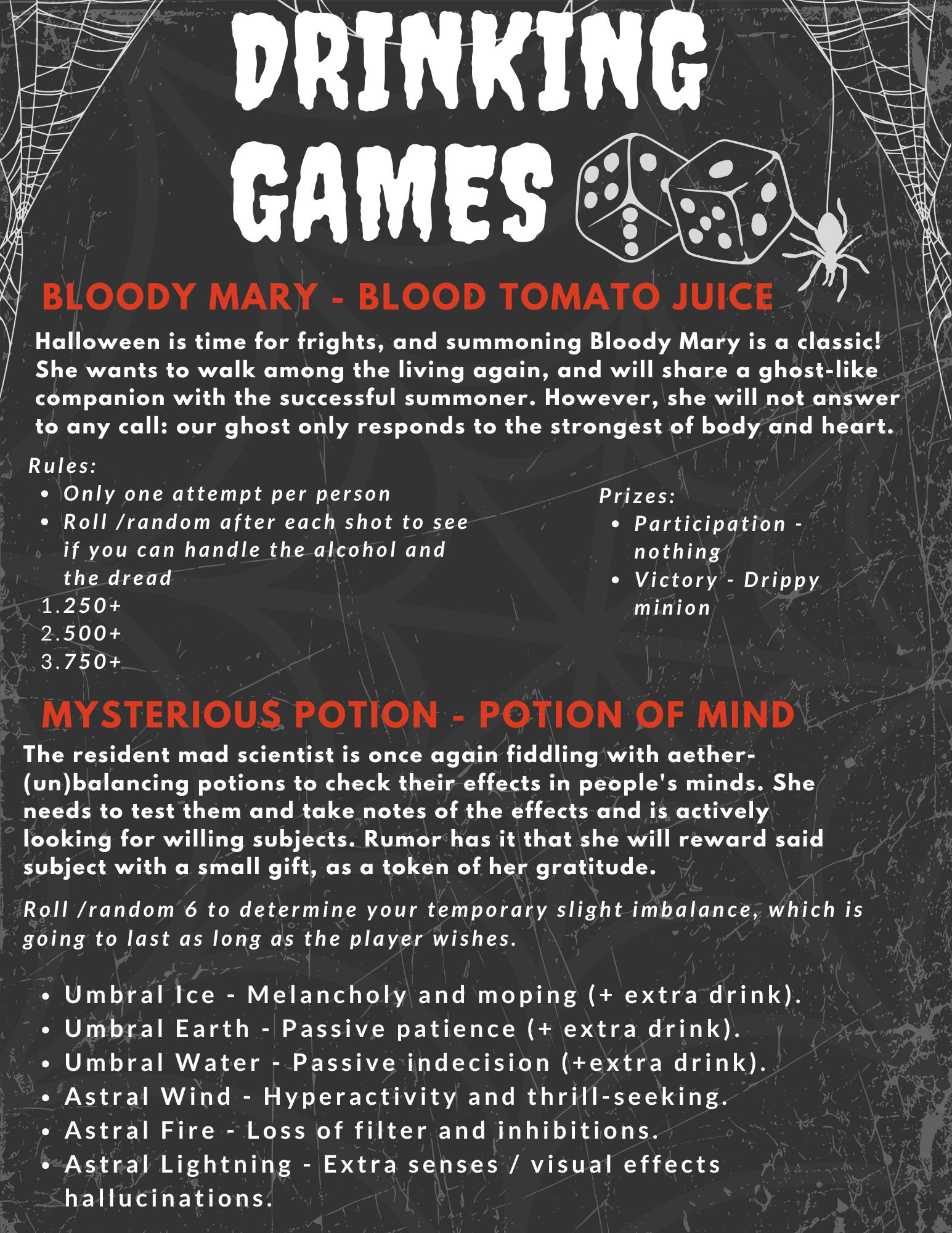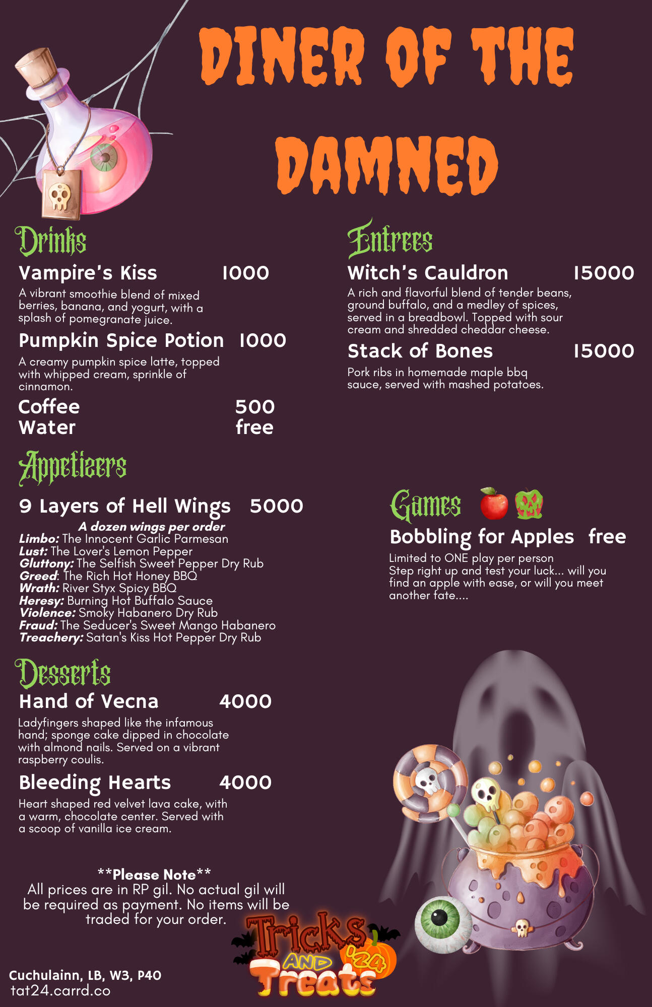 Need a drink or a bite to eat? Check our the role-play spaces during the event! More than themed drinks on tap, try a bar game while listening to the house bards! Find them over on the map!